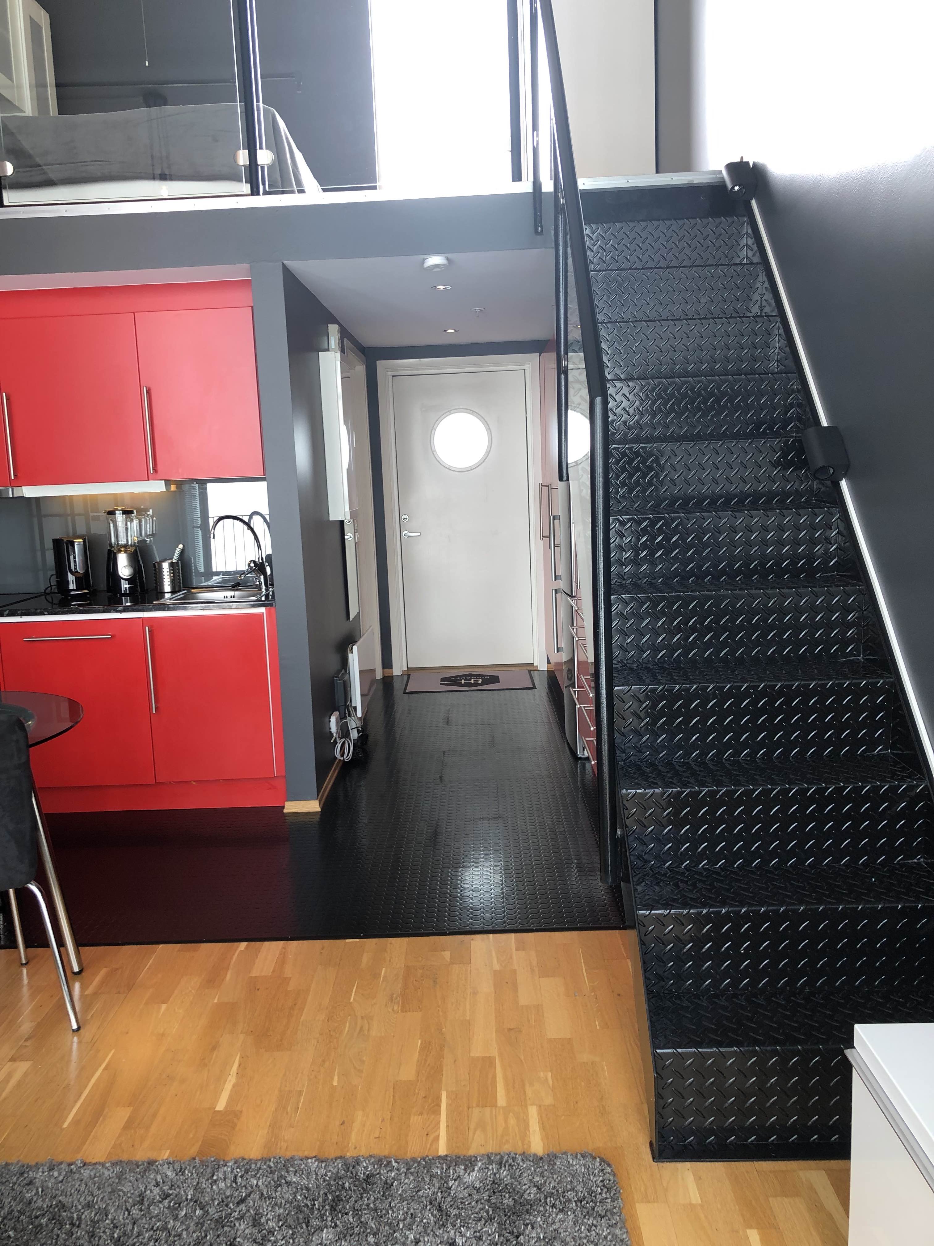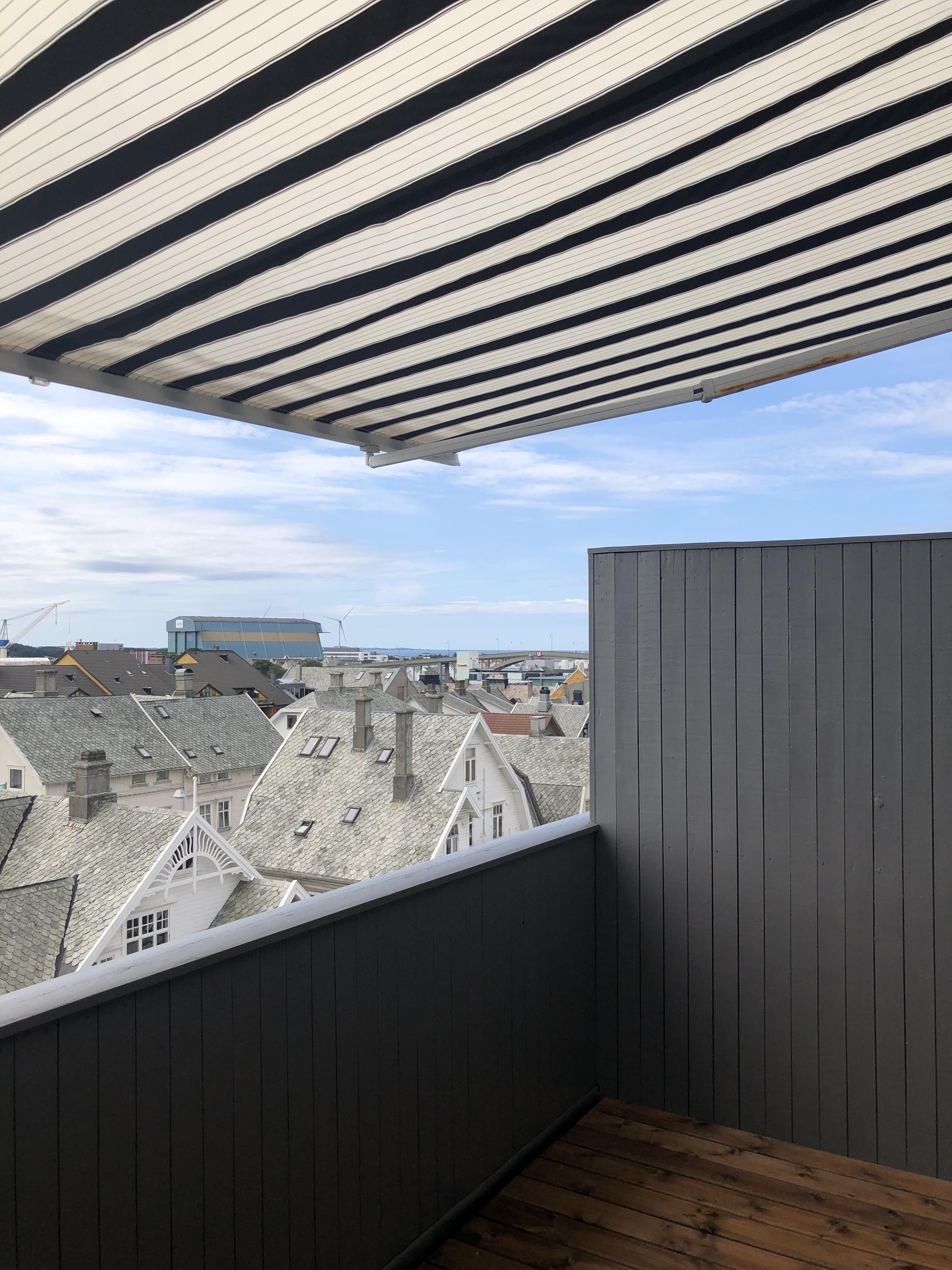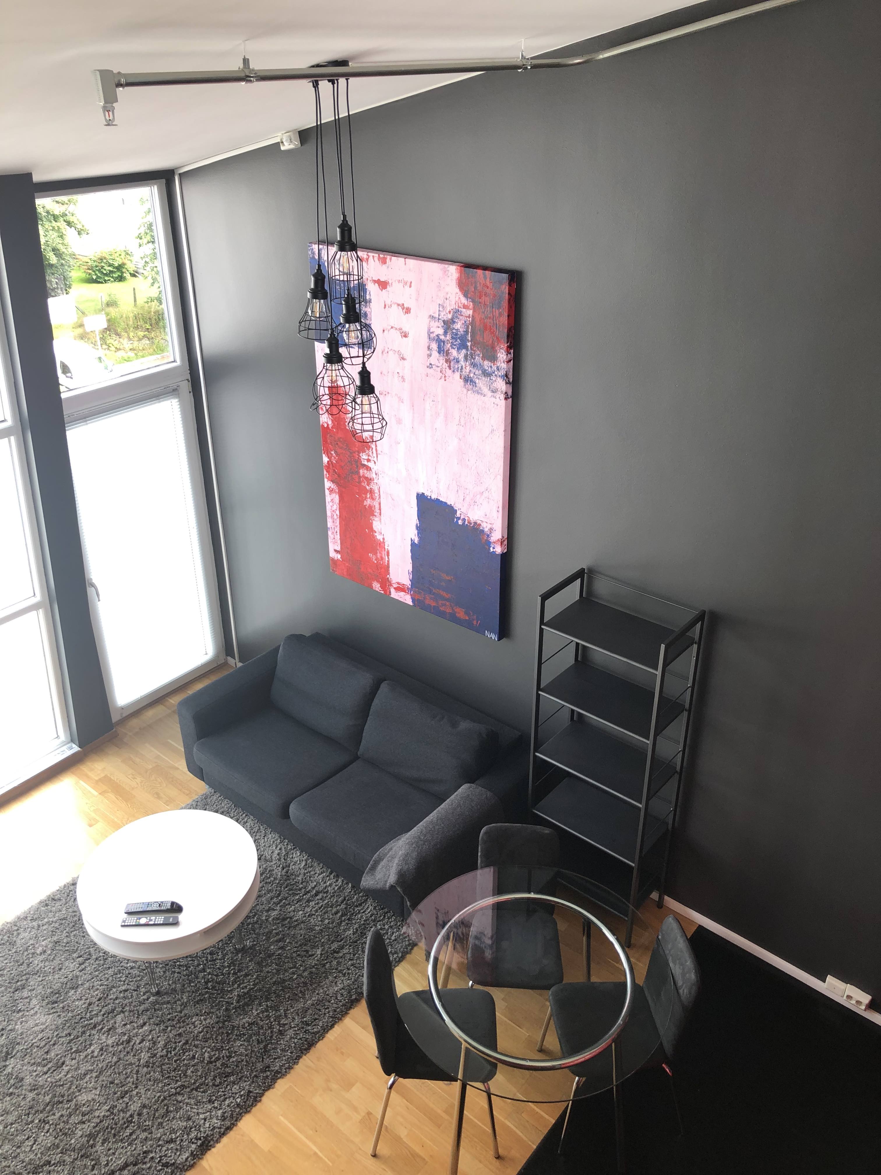 Fully furnished (110 %) studio apartment in Haugesund centre next to hospital and Western Norway University of Applied Sciences) / Haugesund campus. 3rd floor. Own parking place, carport. You need only the key and your own toothbrush to move in a very modern 100 % furnished and equipped apartment.