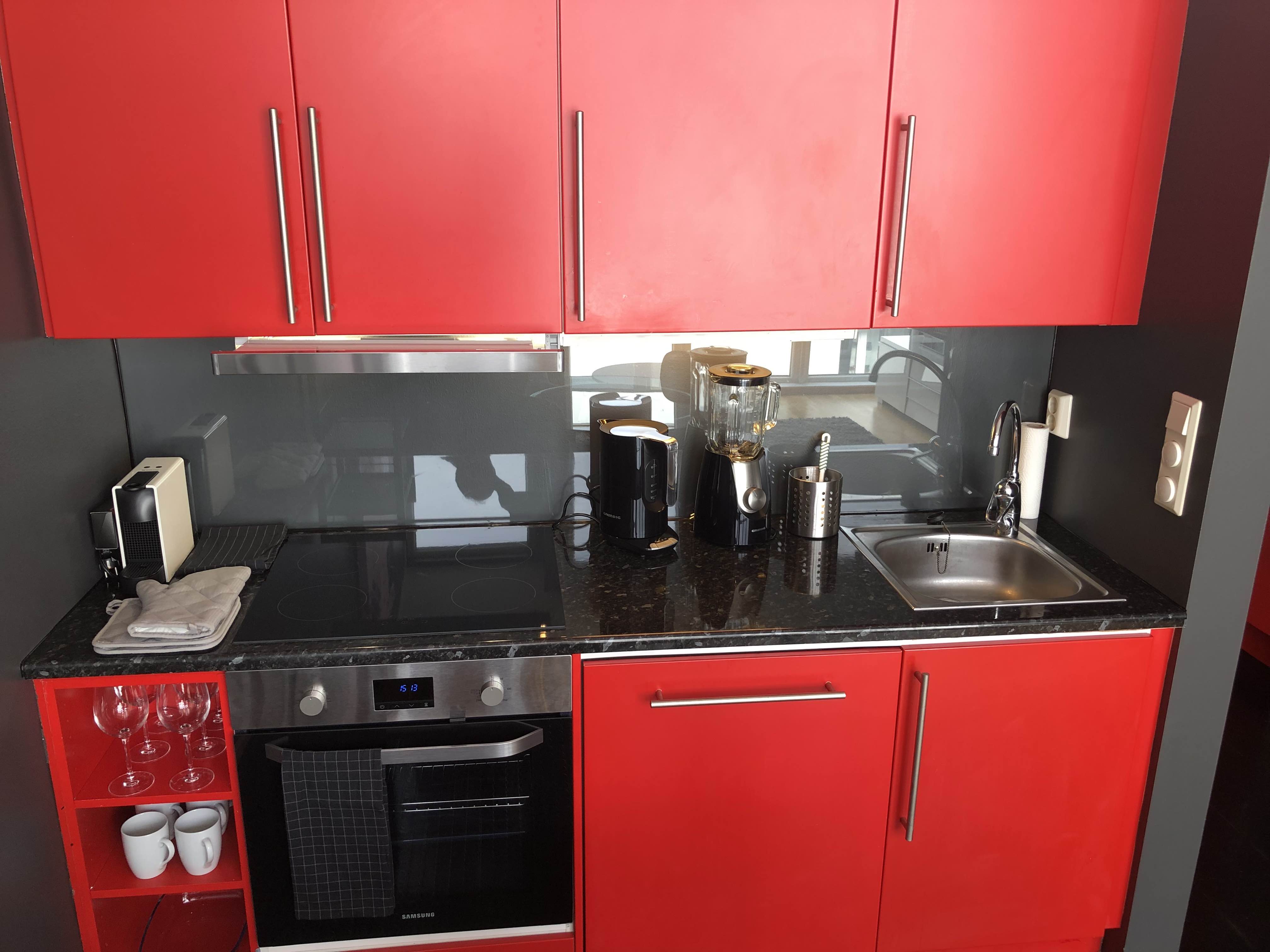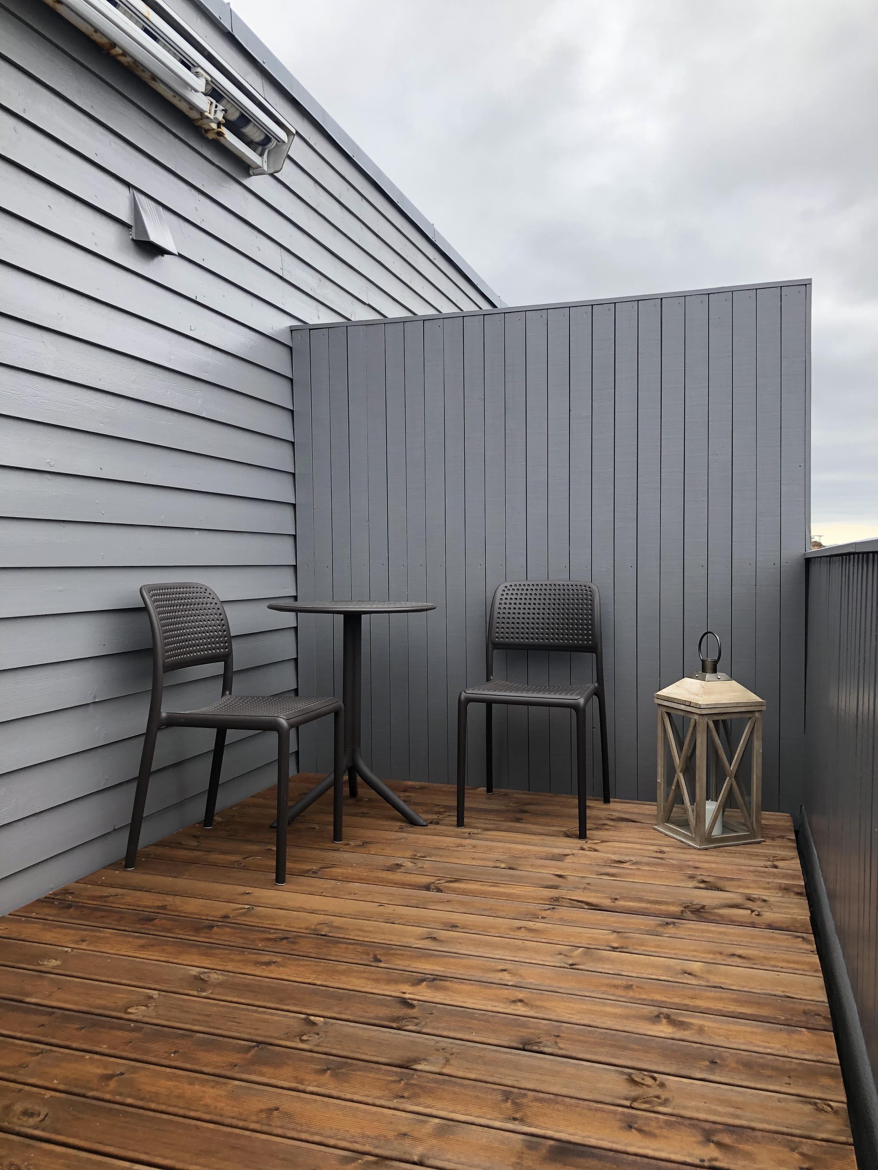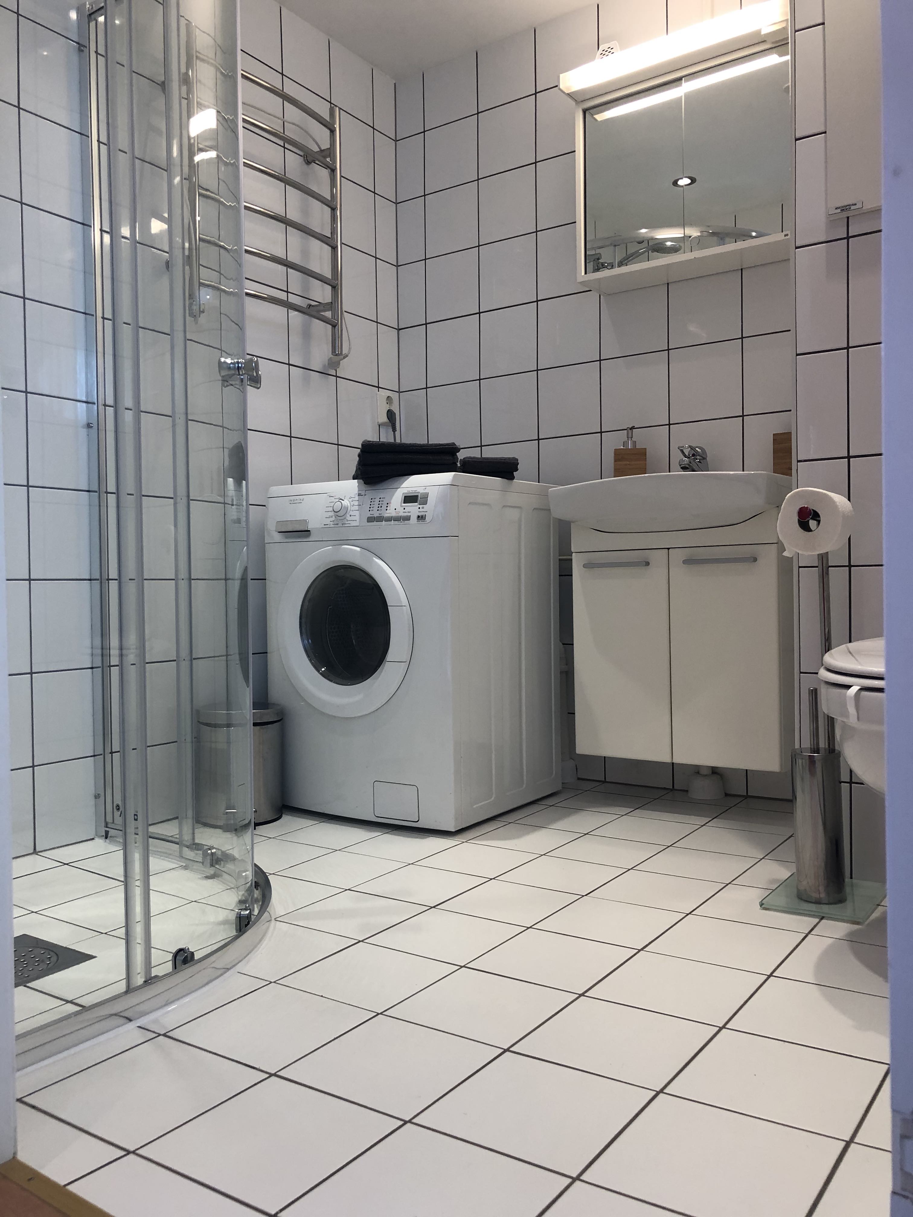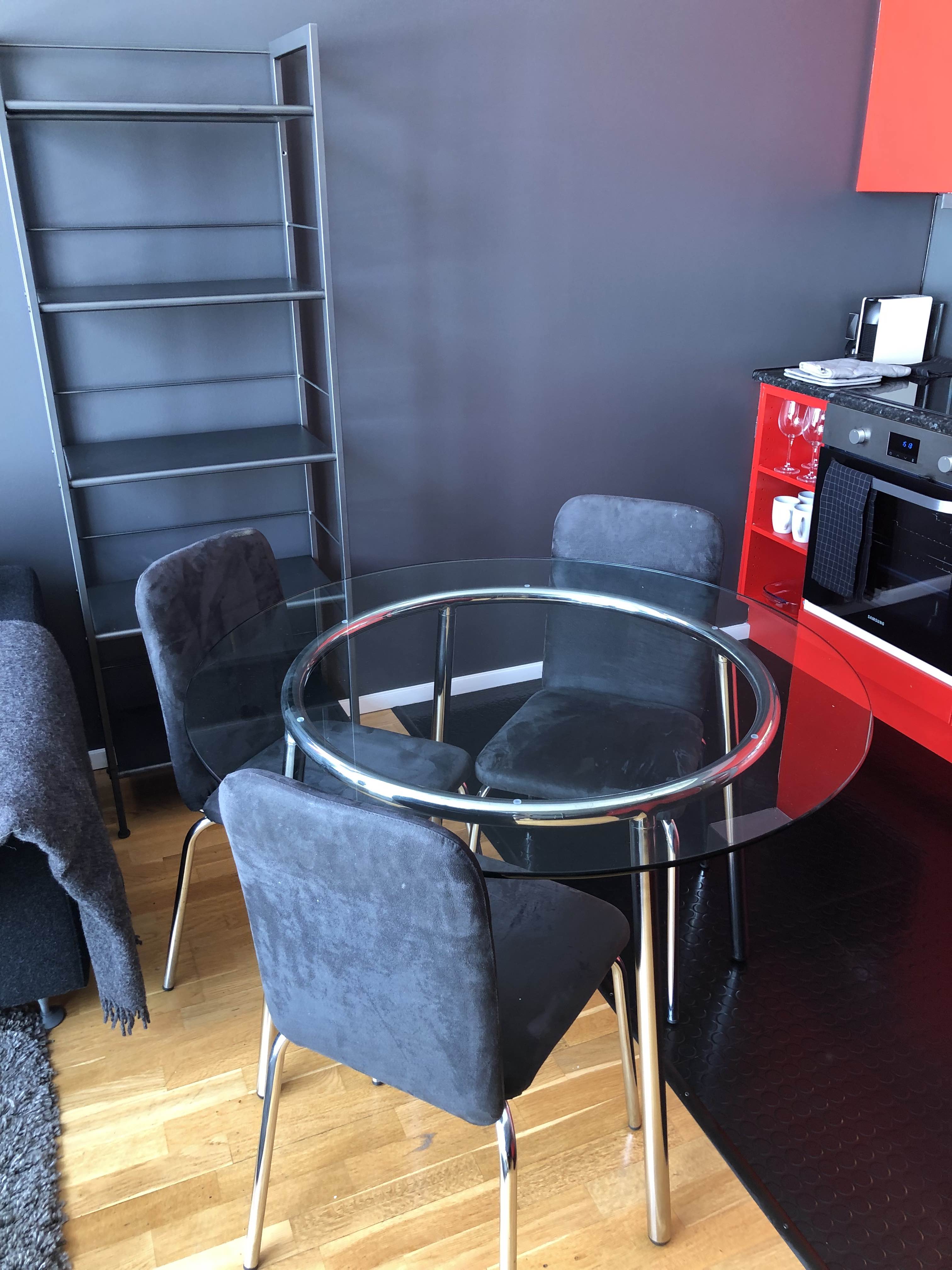 Fully furnished (110 %) studio apartment in Haugesund centre next to hospital and Western Norway University of Applied Sciences) / Haugesund campus. 3rd floor. Own parking place, carport. You need only the key and your own toothbrush to move in a very modern 100 % furnished and equipped apartment.